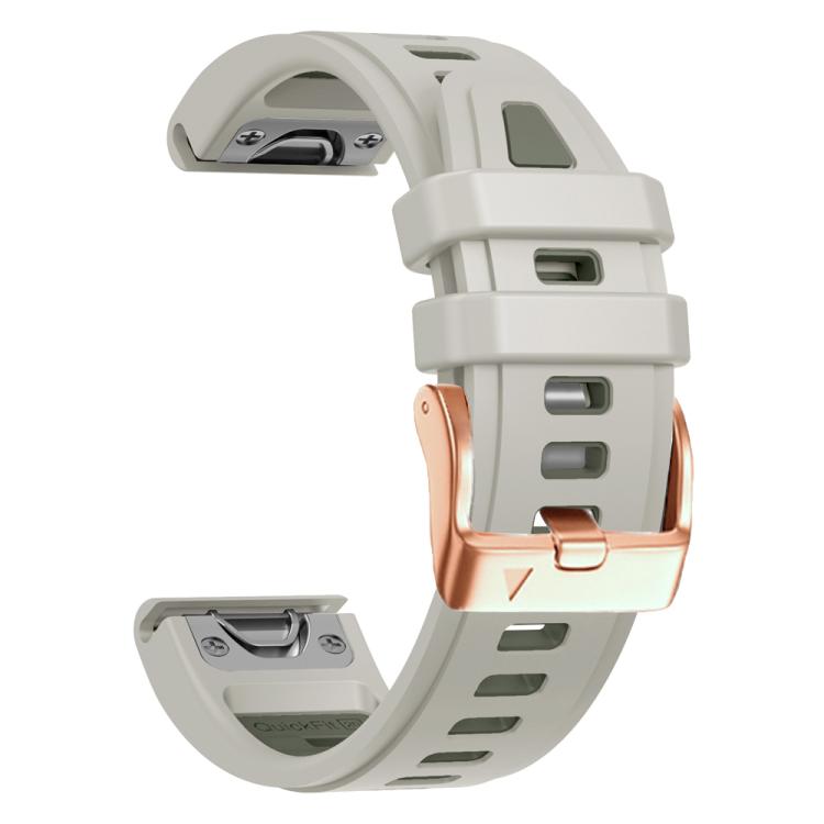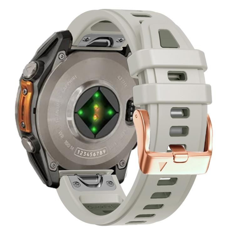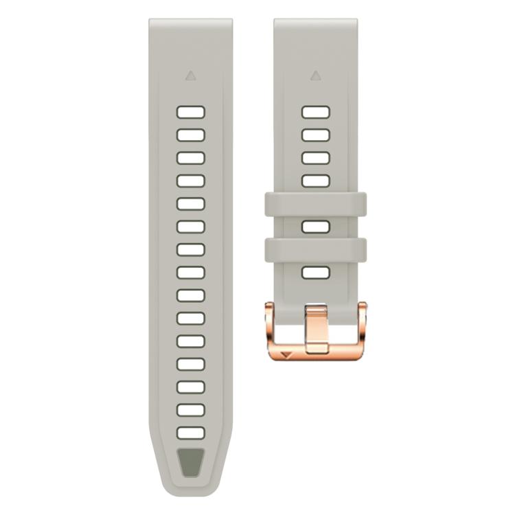 Correa de reloj de silicona de liberación rápida con hebilla de acero en oro rosa para Garmin Fenix 8 AMOLED de 43 mm (gris arena)