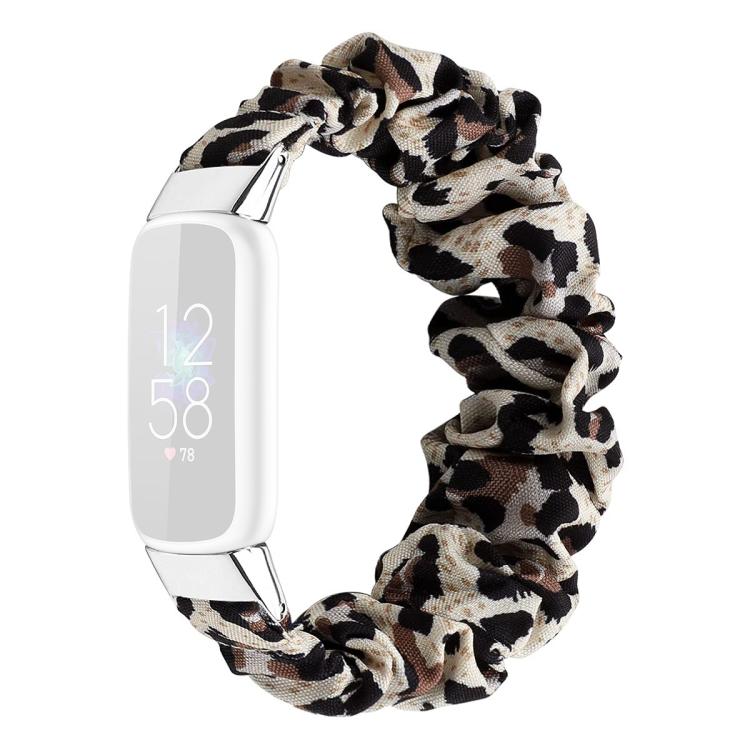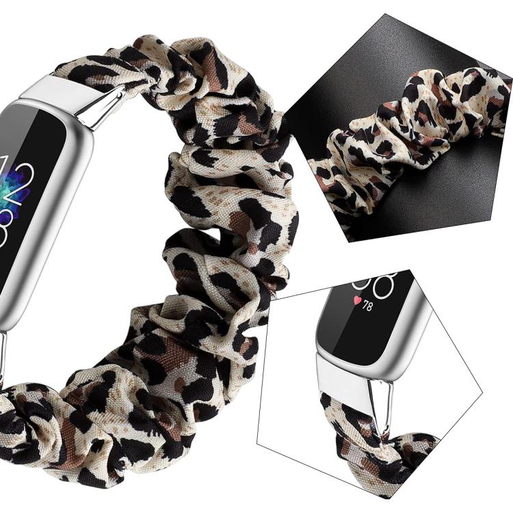 Correa elástica de poliéster xDfind con diseño de corona para Fitbit Luxe, talla L (estampado de leopardo amarillo)