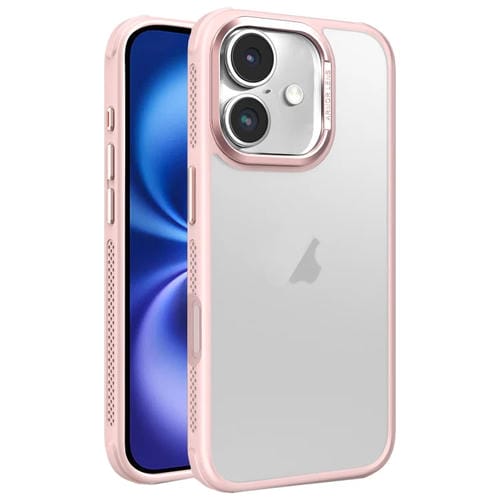 Estuche para Teléfono iPhone 16 Marco Metal Esmerilado Piel Enfriamiento Lateral (Rosa)