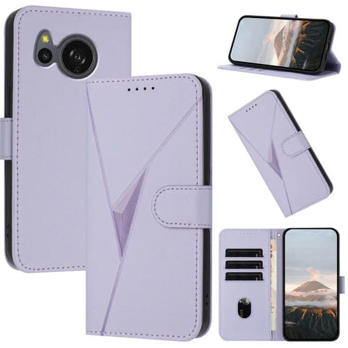 Funda de Cuero con Cierre de Hebilla y Diseño Triangular para Sharp Aquos Sense7 (Morado Claro)