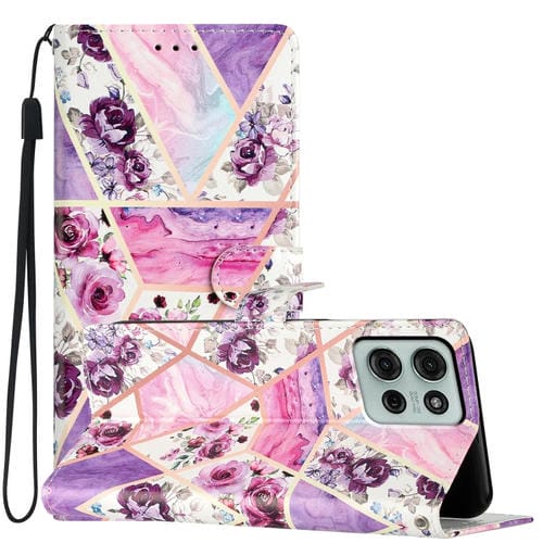 Funda de Cuero Motorola Moto G75 5G con Dibujo de Colores (Mármol Morado)