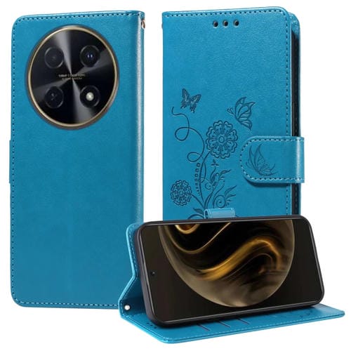 Funda de Cuero Huawei Enjoy 70 Pro 4G Nova 12I con Diseño de Mariposas y Flores en Relieve (Azul)