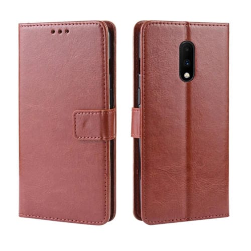 Funda de Cuero OnePlus 7 con Tapa Horizontal Retro, Soporte, Ranuras para Tarjetas y Marco de Fotos (Marrón)