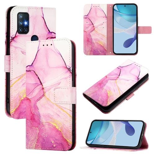 Funda de Cuero con Tapa y Diseño de Mármol Pt003 para OnePlus Nord N10 5G (Rosa, Morado y Dorado)