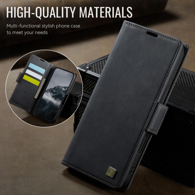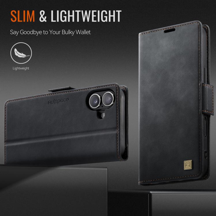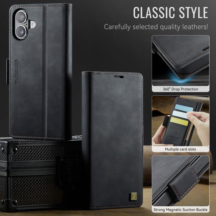 Funda de cuero magnética RFID MagSafe con hebilla lateral para iPhone 17 AutSpace A11 (negra)