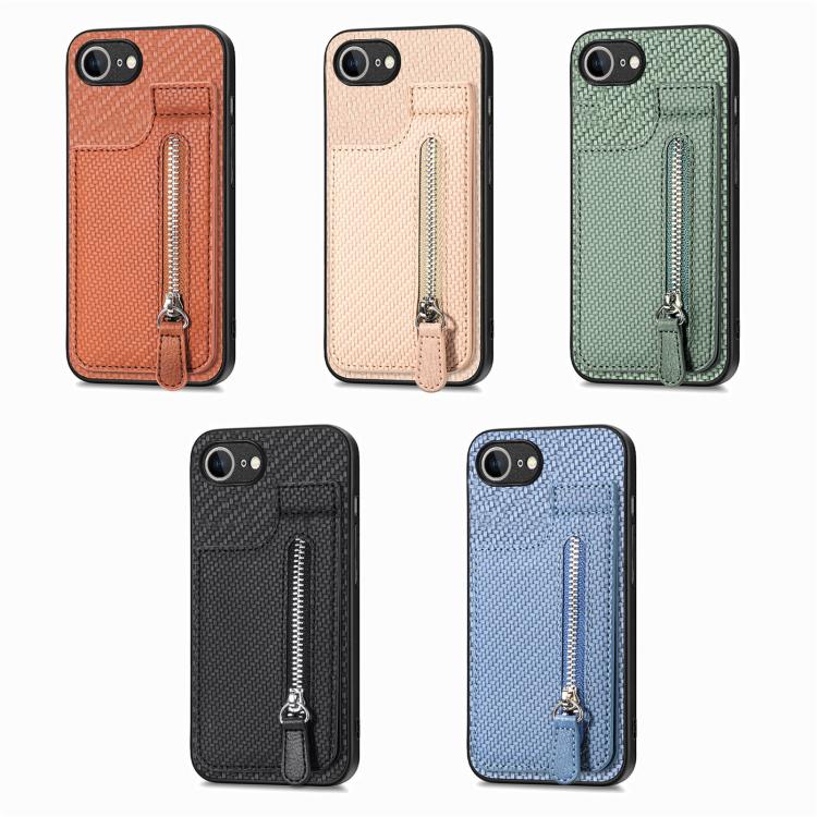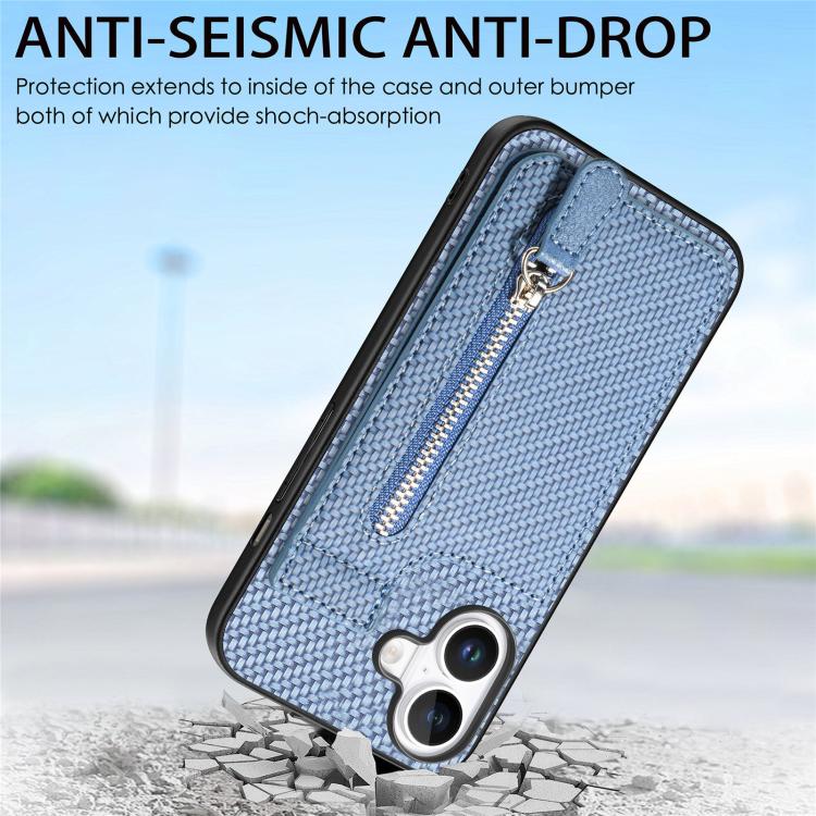 Funda de fibra de carbono con cremallera vertical para iPhone 17 (azul)