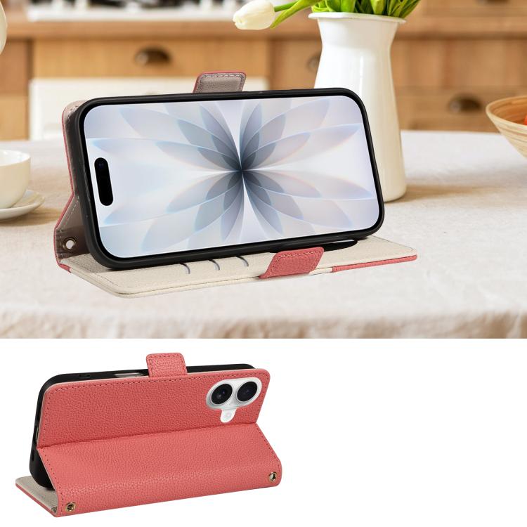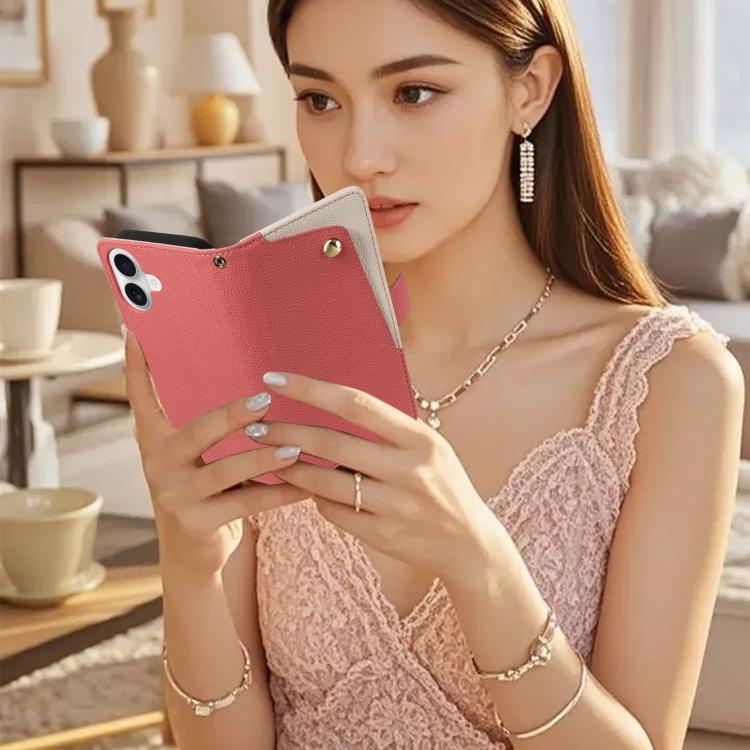 Funda de piel con textura de lichi y espejo para iPhone 17 (Roja)