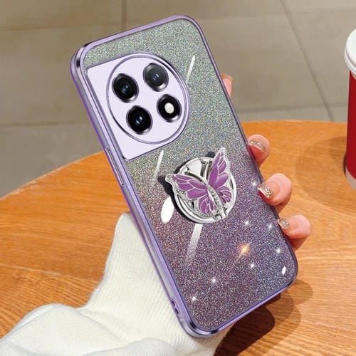 Funda TPU con Soporte Mariposa y Purpurina Degradada Plateada para OnePlus 11 (Morado)
