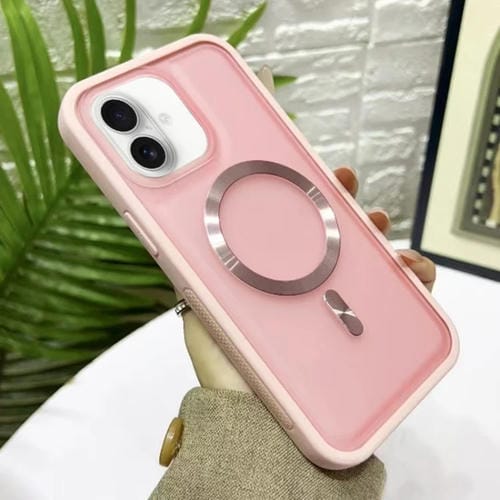 Funda híbrida Silicona Acrílica Magsafe para iPhone 16 Plus (Rosa) 3 En 1