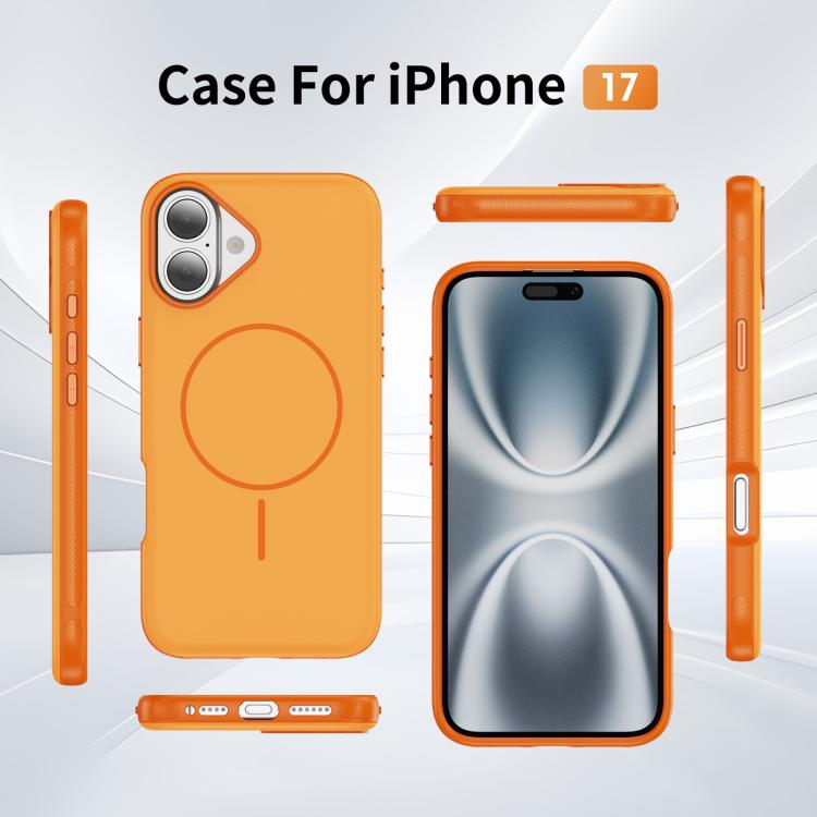 Funda híbrida de TPU y PC para iPhone 17, imitación MagSafe original, bicolor (naranja)
