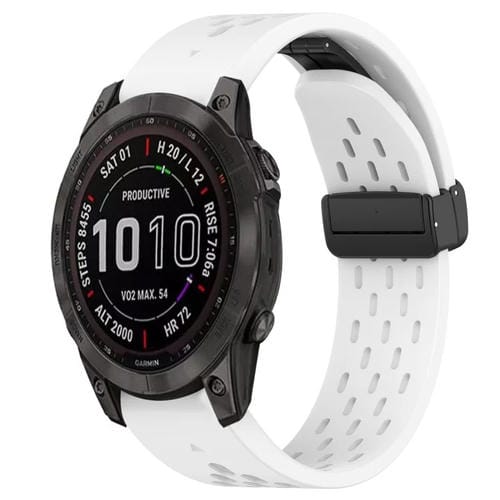 Correa de Silicona para Garmin Fenix 7S Sapphire Solar con Orificio y Hebilla Plegable de 20mm (Blanco)