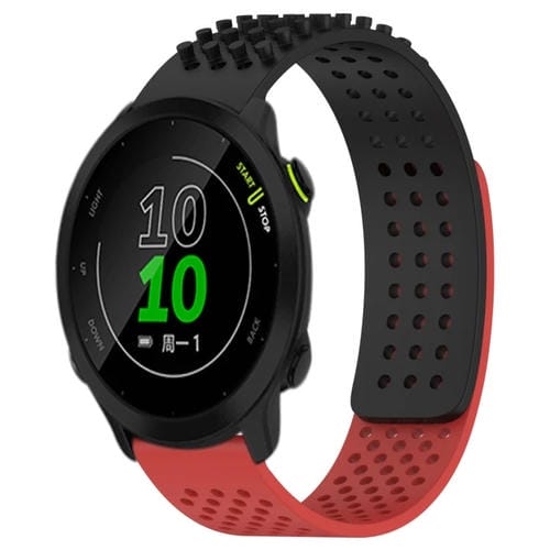 Correa de Silicona para Garmin Forerunner 158 con Puntos 3D Transpirables y Orificios de 20mm (Negro + Rojo)