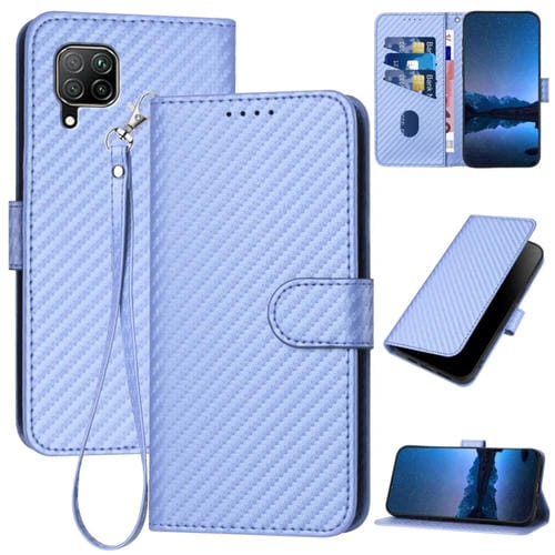 Funda de Cuero para Huawei P40 Lite Yx0070 con Hebilla de Fibra de Carbono y Cordón (Púrpura Claro)