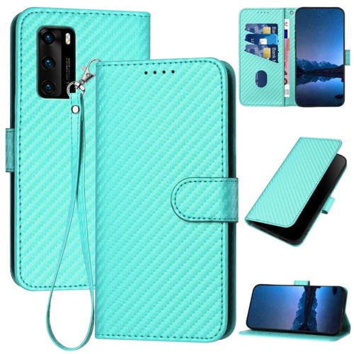 Funda de Cuero para Huawei P40 Yx0070 con Hebilla de Fibra de Carbono y Cordón (Azul Claro)