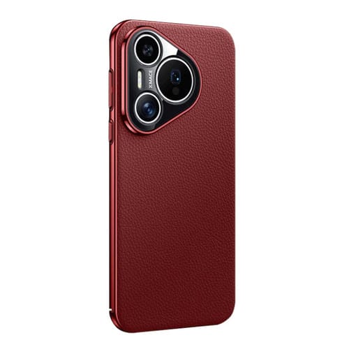 Funda para Huawei Pura 70 de Cuero Genuino con Textura Litchi (Rojo)