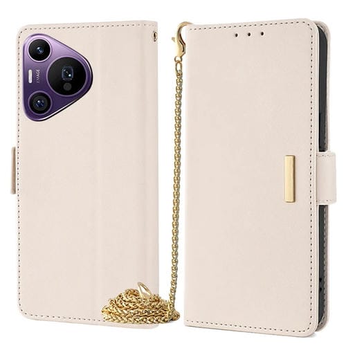 Funda de Cuero con Cadena Cruzada para Huawei Pura 70 Pro / 70 Pro + 5G (Blanco)