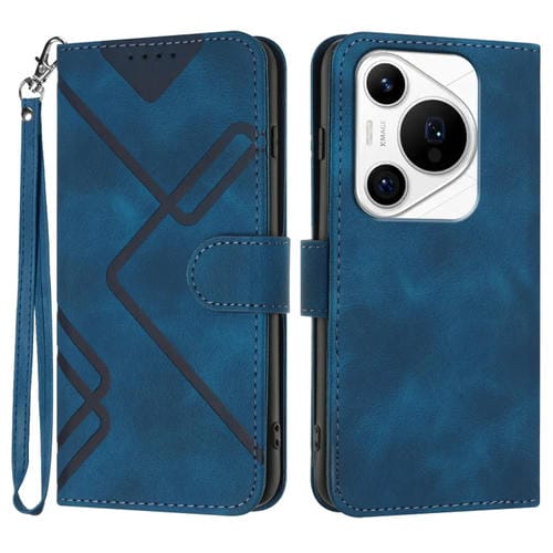 Funda para Huawei Pura 70 Pro/70 Pro+ de Cuero con Sensación de Piel y Patrón de Líneas (Azul Real)