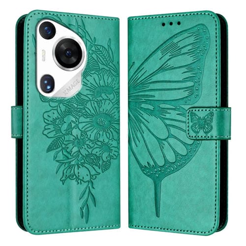 Funda de Cuero para Huawei Pura 70 Pro con Mariposa en Relieve (Verde)