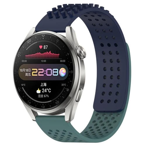 Correa de Silicona para Huawei Watch 3 Pro con Puntos 3D Transpirables y Orificios 22mm (Azul Medianoche + Verde Oliva)