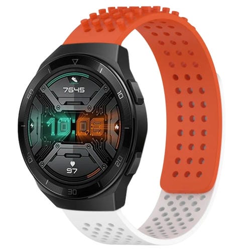 Correa de Silicona para Huawei Watch GT 2E 22mm con Puntos 3D Transpirables (Naranja + Blanco)