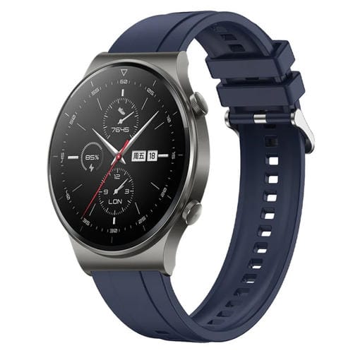 Correa de Silicona para Huawei Watch GT2 Pro GT 2E GT2 46mm Patrón Neumático con Hebilla Plateada (Azul Medianoche)