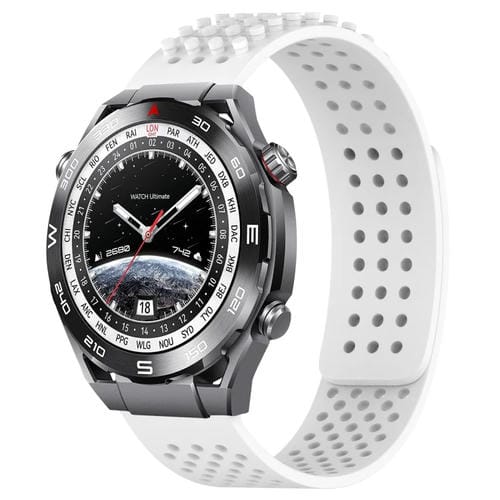 Para Huawei Watch Ultimate Correa de Reloj de Silicona con Puntos 3D Transpirables con Orificios de 22mm (Blanco)