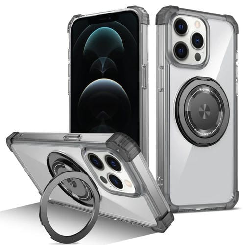 Estuche Magnético para iPhone 12 Pro Gold Shield Cd Pattern con Soporte Giratorio (Negro Transparente)