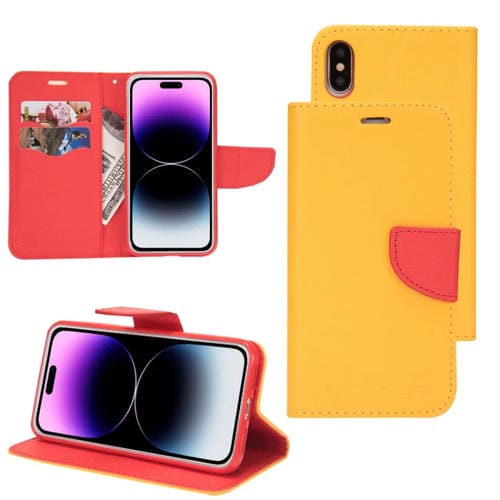 Funda para iPhone 13 Pro Mercury Contrast Color Splicing Leather Phone Case (Amarillo)