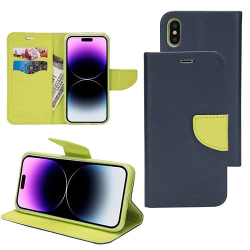 Funda para iPhone 13 Pro Mercury Contrast Color Splicing Leather Phone Case (Azul Oscuro)