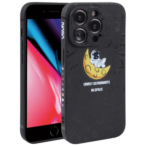 Funda de teléfono para iPhone 7 Plus 8 Plus patrón de astronauta borde recto silicona (Negro)