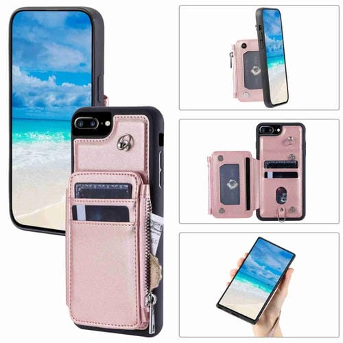 Funda para Teléfono iPhone 8 Plus/7 Plus Rfid Ranuras Tarjetas Cremallera (Oro Rosa)