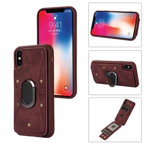 Funda Trasera Armor Ring Wallet para iPhone X / Xs (Rojo Vino)