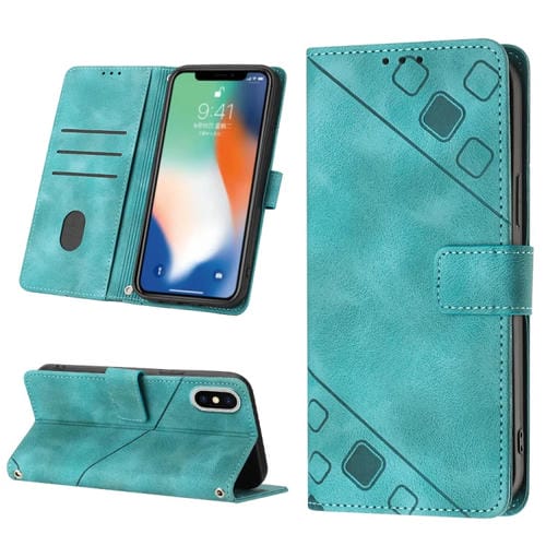 Estuche para Teléfono iPhone X Xs Cuero En Relieve con Tacto de Piel (Verde)