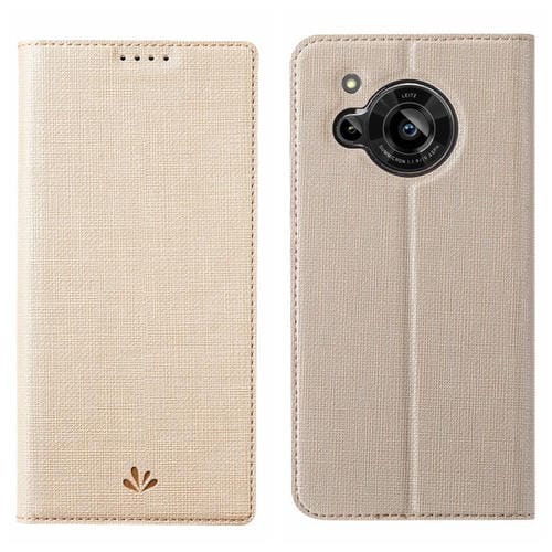 Funda para Serie Shark Aquos R7 Vili Dmx TPU y PU Cuero Flip Horizontal Atracción Magnética (Oro)