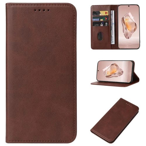Funda de Cuero para OnePlus Ace 3/12R con Cierre Magnético (Marrón)