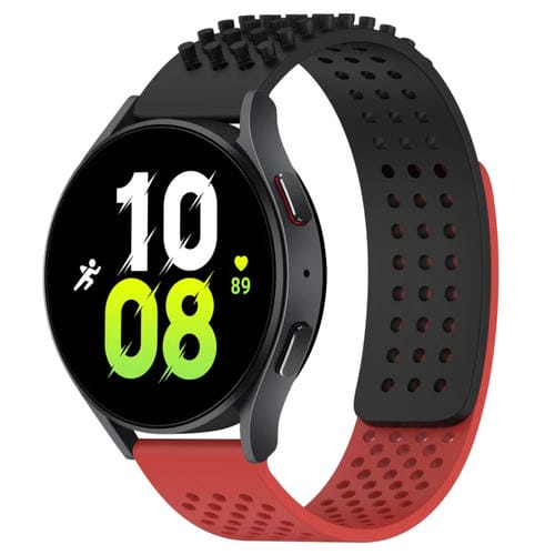 Correa de Reloj para Samsung Galaxy Watch 5 44mm 20mm con agujeros y puntos 3D transpirables (Negro + Rojo)