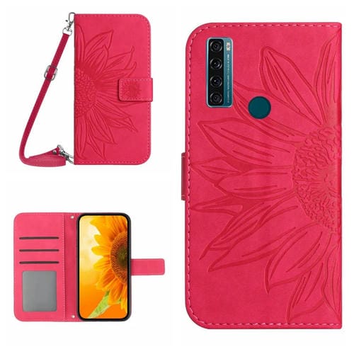 Funda Flip de Cuero para TCL 20 Se Skin Feel con Cordón y Diseño Sun Flower (Rose Red)