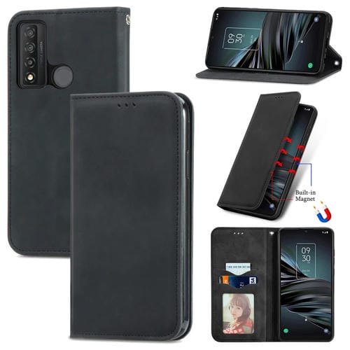 Funda para TCL 20 Xe Retro Piel Siente con Flip Horizontal Magnético (Negro)