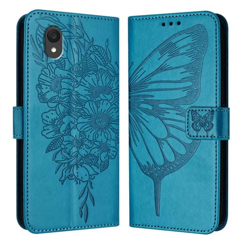 Funda de Cuero para TCL 201 con Mariposa en Relieve (Azul)