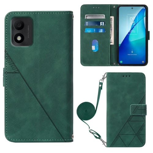 Funda de Cuero para TCL 303 Crossbody con Tapa en Relieve (Verde Oscuro)