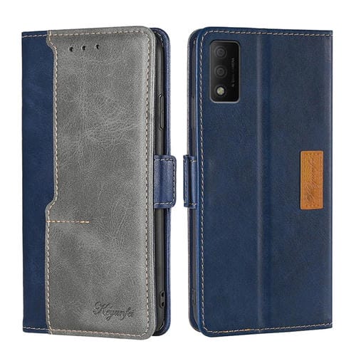 Funda de Cuero para TCL 30T T603Dl con Hebilla Lateral y Color de Contraste (Azul + Gris)
