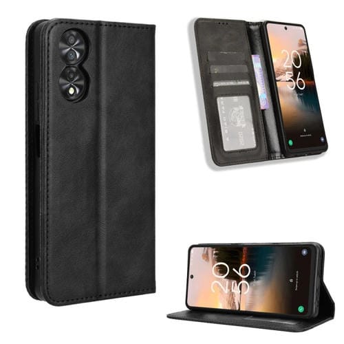 Funda para TCL 40 Nxtpaper 4G de Cuero con Textura Retro y Hebilla Magnética (Negro)