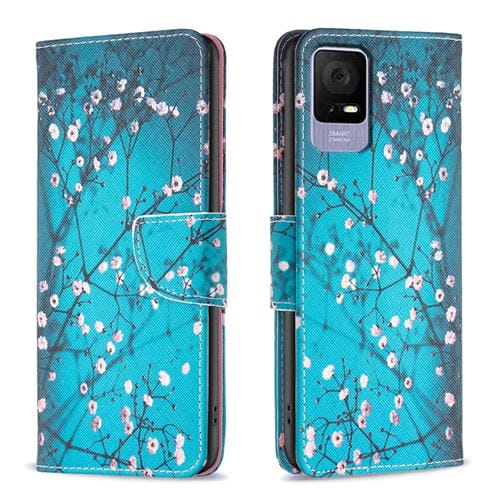 Funda de Cuero para TCL 40 Se con Patrón de Flor de Ciruelo (Colores)