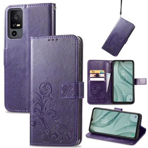 Estuche para TCL 40 Xe 5G de Cuero con Hebilla en Relieve y Cierre de Cuatro Hojas (Púrpura)
