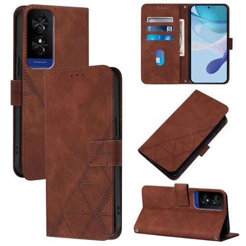 Funda de Cuero para TCL 50 5G Crossbody con Tapa En Relieve 3D (Marrón)