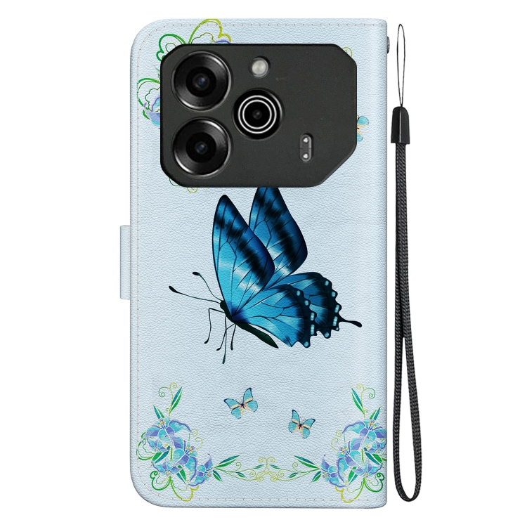 Estuche de Cuero para Tecno Pova 6 Pro y Pova 6 con Dibujo Coloreado y Textura de Cristal (Azul)