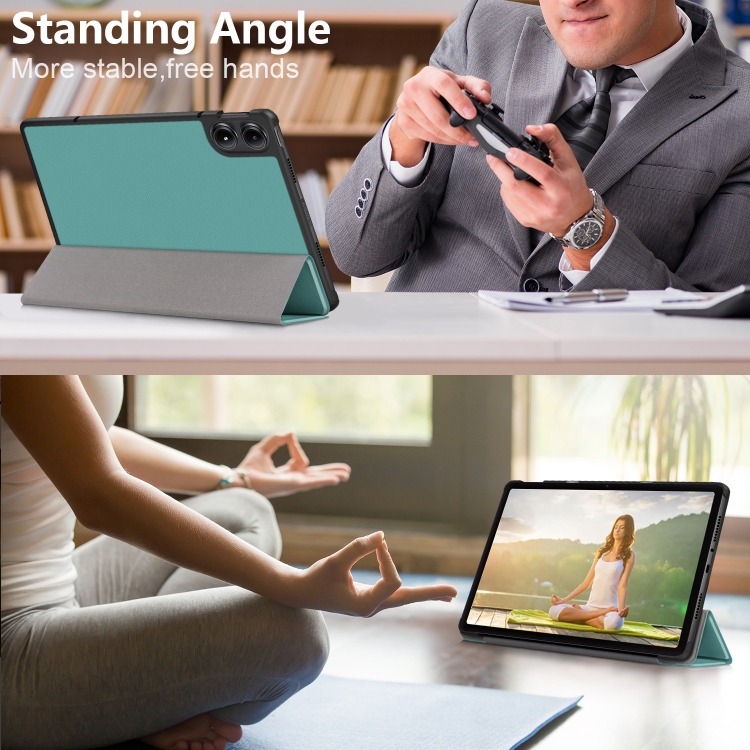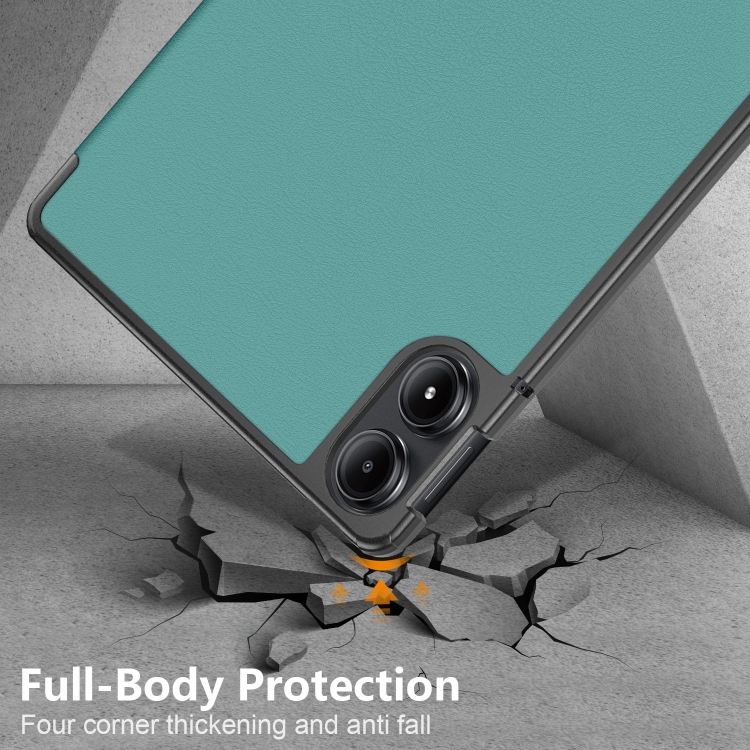 Para Xiaomi Redmi Pad Se Pro Custer Pure Color Funda para Tableta Inteligente de Cuero con Soporte de 3 Pliegues (Verde Oscuro)