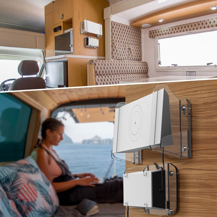 1. Soporte de pared específico para router Starlink G3, ideal para colocar el router y la fuente de alimentación original.